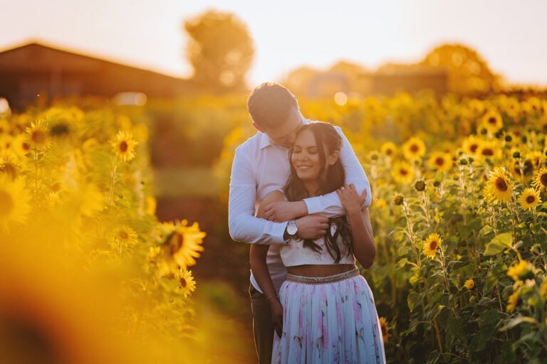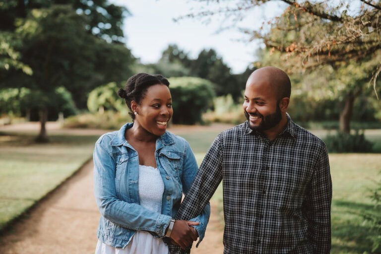 Ella and Rob during their couple portrait session in the grounds at Gaynes Park, summer afternoon light – photographed by Tel, Lily & White